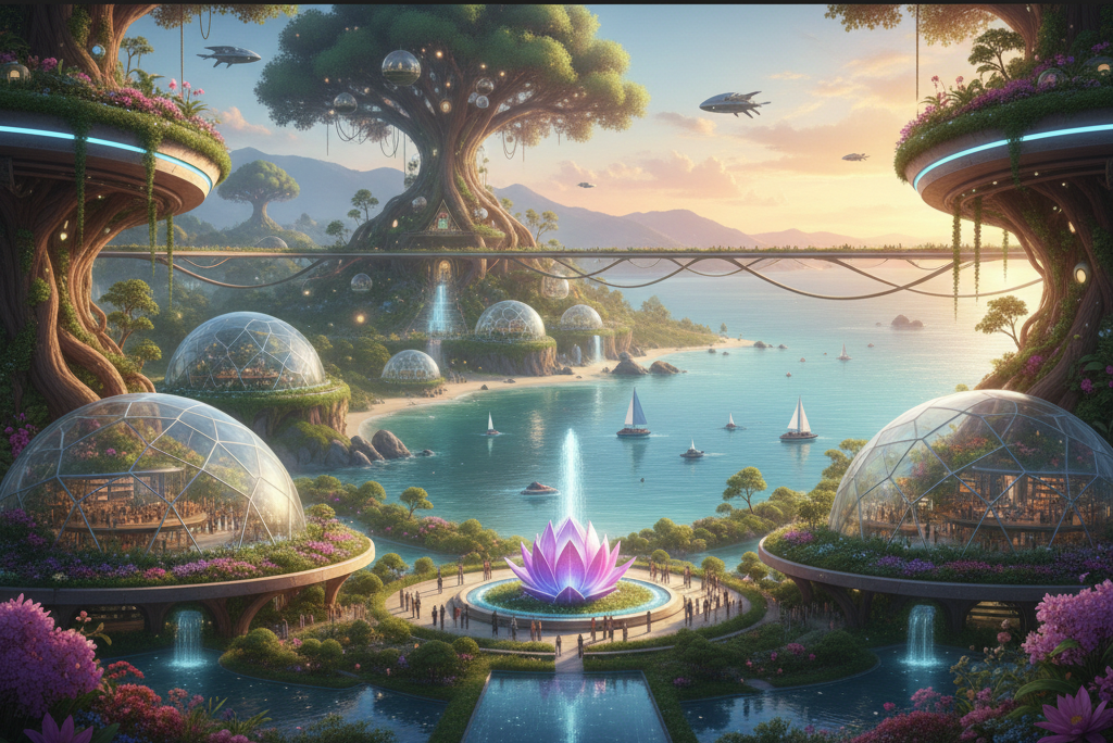 コミュニティ通貨: 住民が行う「癒やし」や「教育」の活動は、独自のコミュニティ通貨で評価され、都市内でのサービス利用に充当されます。これは、GDPには表れない「非貨幣価値」を可視化する試みです。